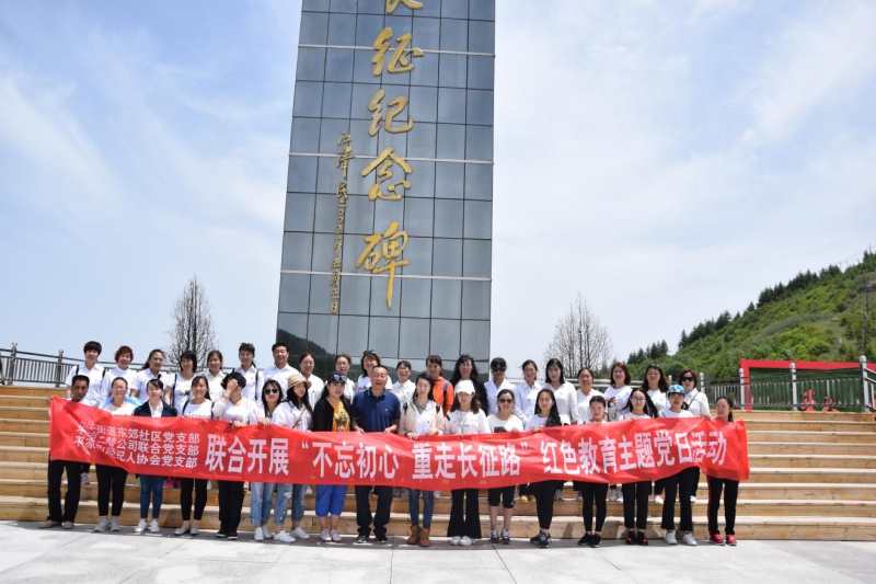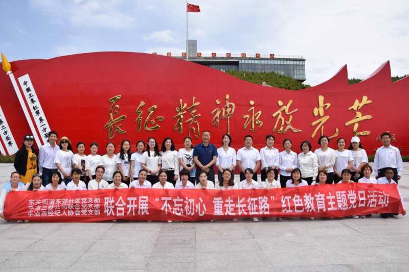 平凉三替公司联合党支部、平凉市经纪人协会全体党员和入党积极分子在长征精神永放光芒纪念碑前合影