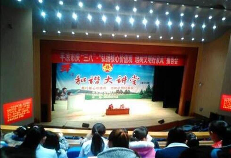 市妇联举办的和谐大讲堂暨平凉市庆“三八”弘扬核心价值观,培树文明好家风报告会